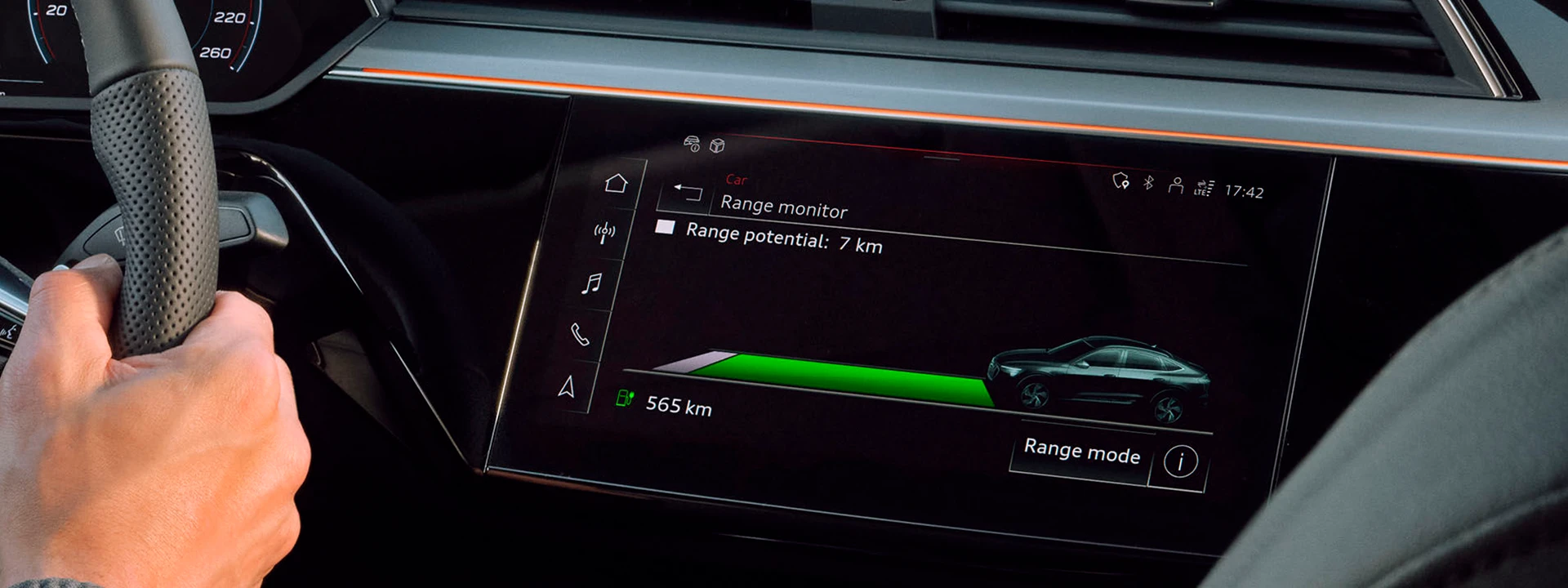 O novo Audi Q8 e-tron destaca-se pela dinâmica de condução. Os vários modos de condução da suspensão a ar adaptativa, seja por eficiência ou esporte, pode ser facilmente definido através do Audi drive select. As características dinâmicas laterais melhoradas também ajudam a melhorar o comportamento da direção e nas curvas.