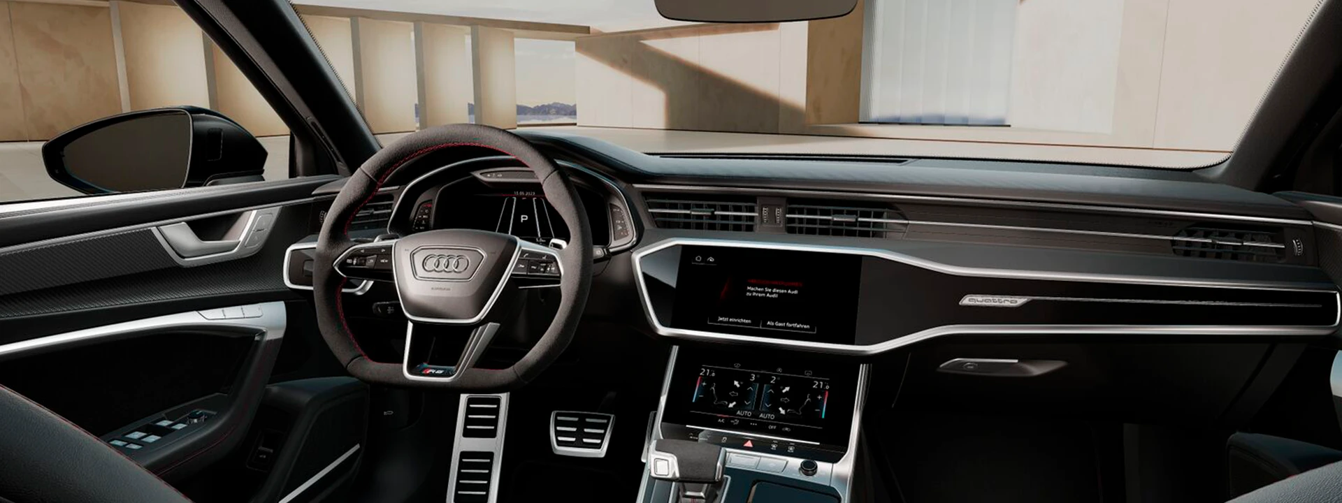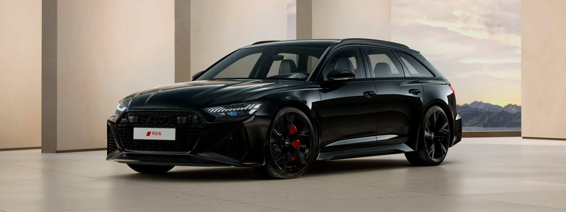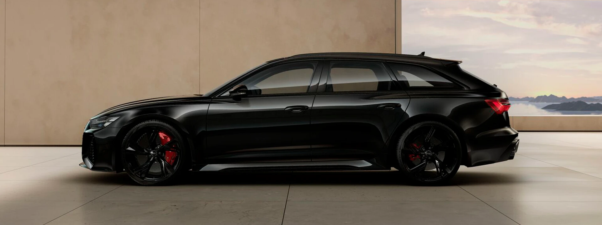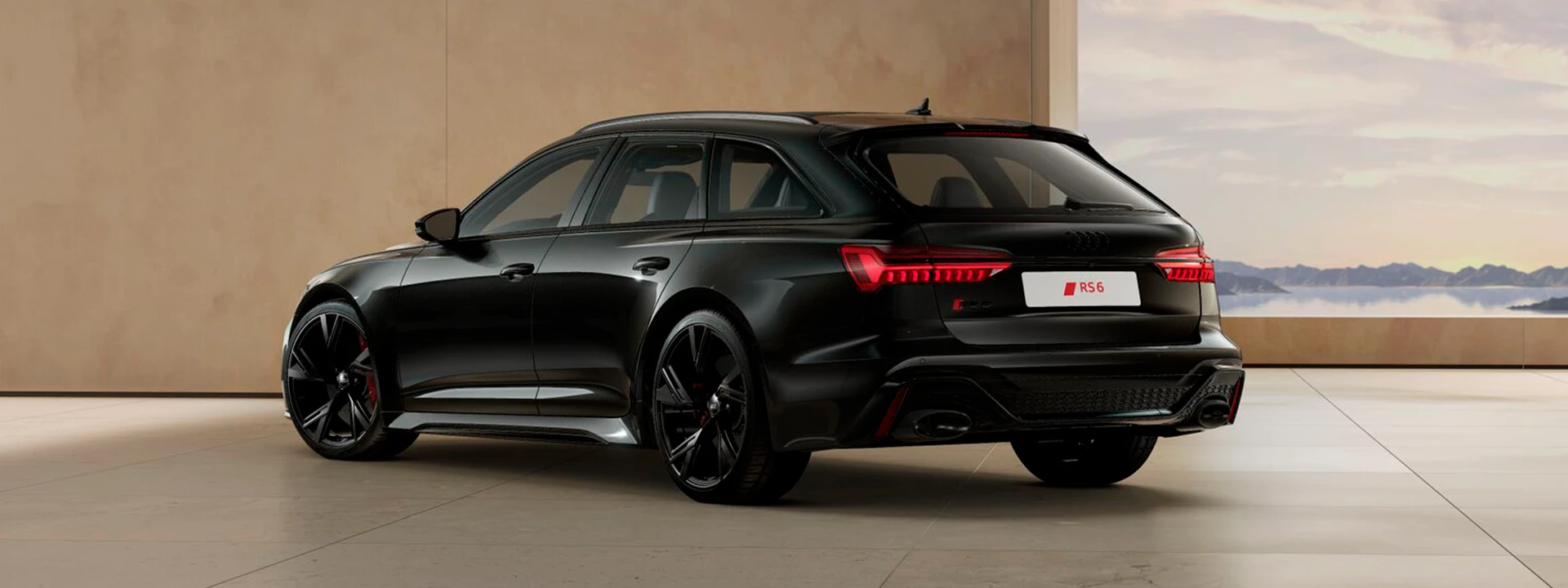 A versão mais potente do Audi RS 6 Avant possui design único com os detalhes visuais harmônicos em preto brilhante, combinando com os espelhos retrovisores externos e novas rodas de liga leve de 22 polegadas.