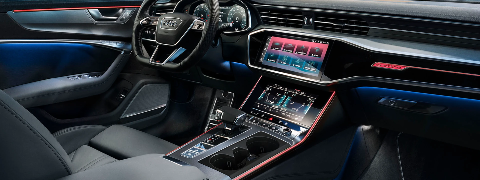 O Audi Virtual Cockpit Plus exibe as informações de condução mais importantes em uma das três variantes de layout, com operação personalizável, navegação de menu intuitiva e display orientado à direção.
