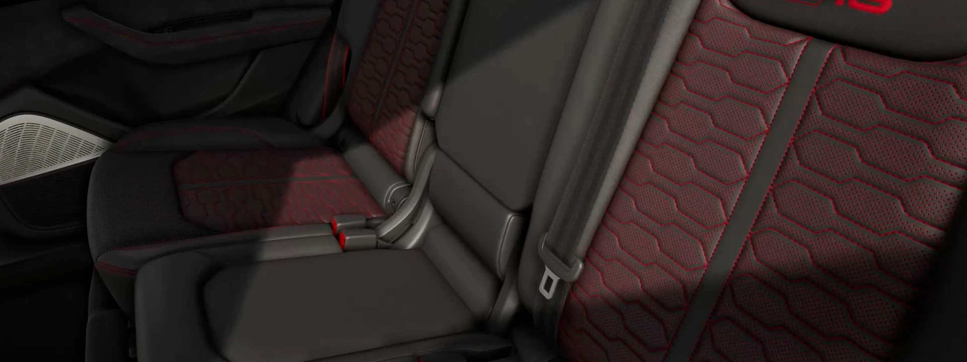 Escolha entre os pacotes de design RS diferentes para criar um ambiente ao seu gosto. O pacote de design RS vermelho inclui insertos decorativos em microfibra Dinâmica, painel de instrumentos em couro napa fino com costuras contrastantes em Vermelho Express e cintos de segurança pretos com acabamento vermelho.